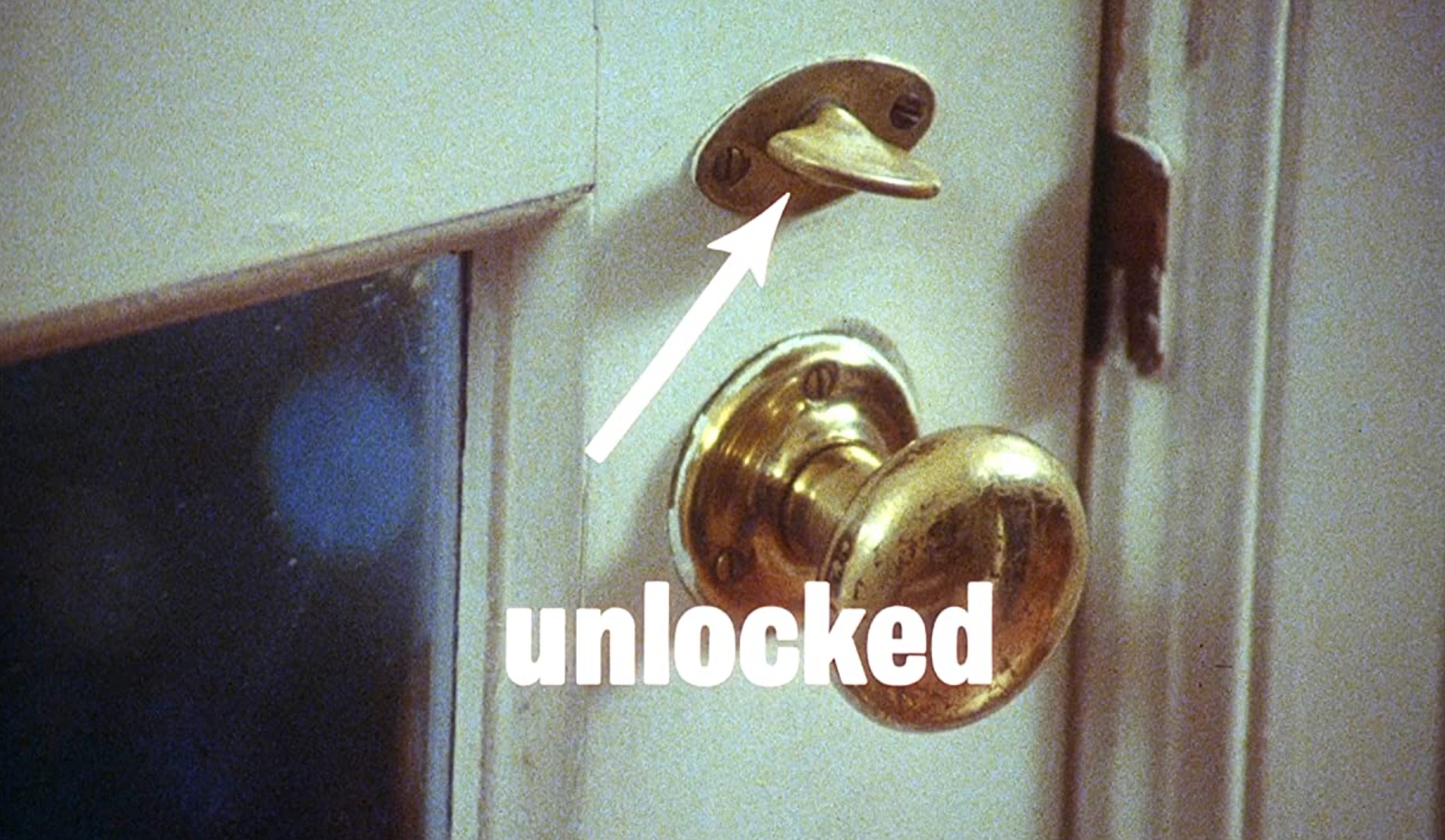 …and, having set the tone nicely in the first second of the film, it goes on from there. In an example of how it goes on from there, here is my Mystery Picture from yesterday. I did not, by the way, add the words and the arrow into this shot. No, that’s just how this movie rolls.