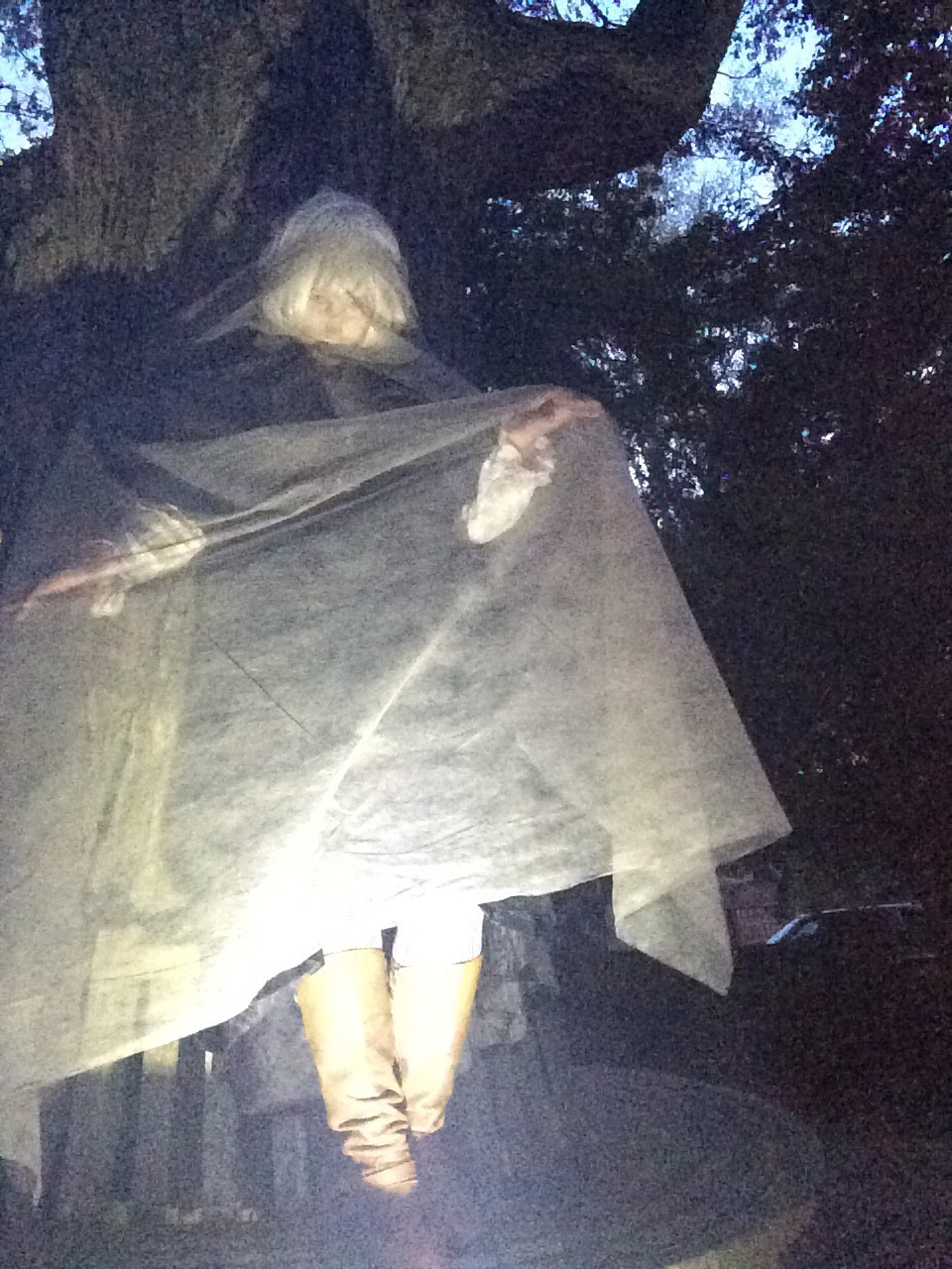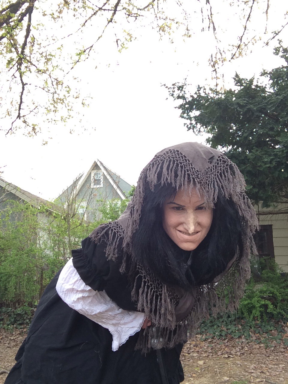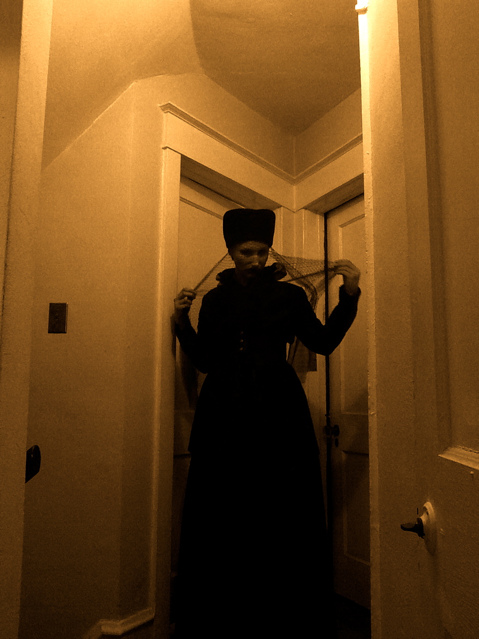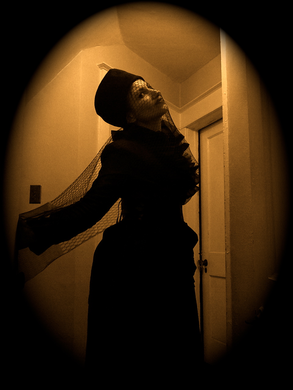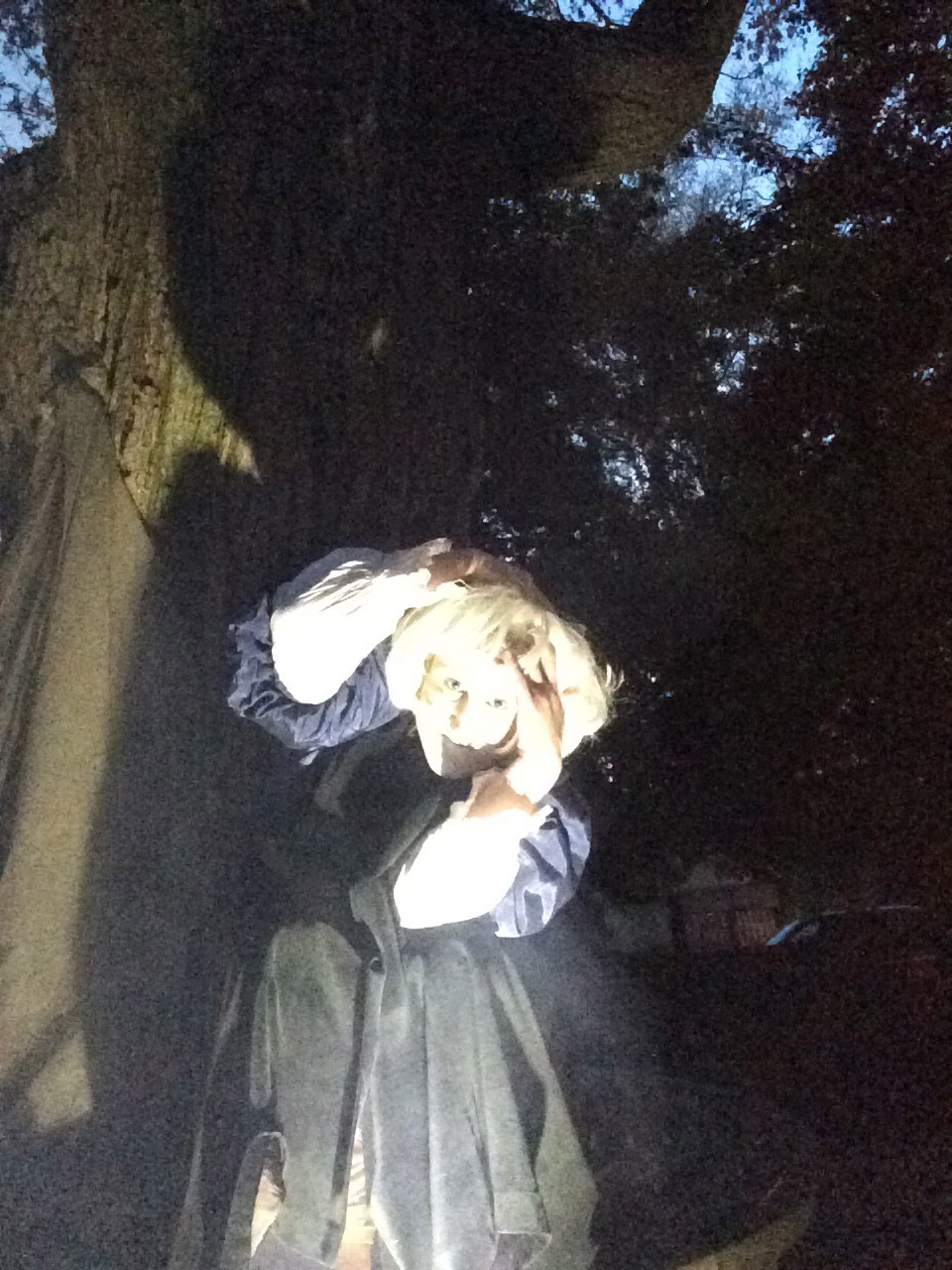 Ah, The Yeoman. This is another favorite of mine. I took the pictures in our front yard at night, and made Alec sit out with me, doing things on his computer, because I thought this might normalize things for anyone who happened to see me. “Auugh!” They would think. “What the hell is that?” And then they’d see Alec, composedly doing computer-stuff in the vicinity. “Ah,” they would say. “That guy isn’t worried about the ghost or crazy person or whatever. I will not worry either.”