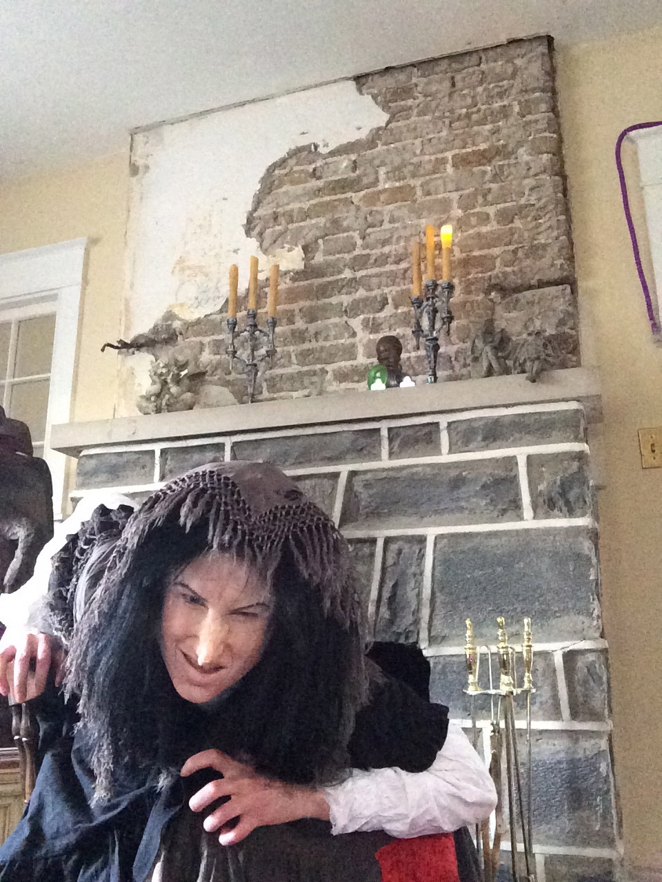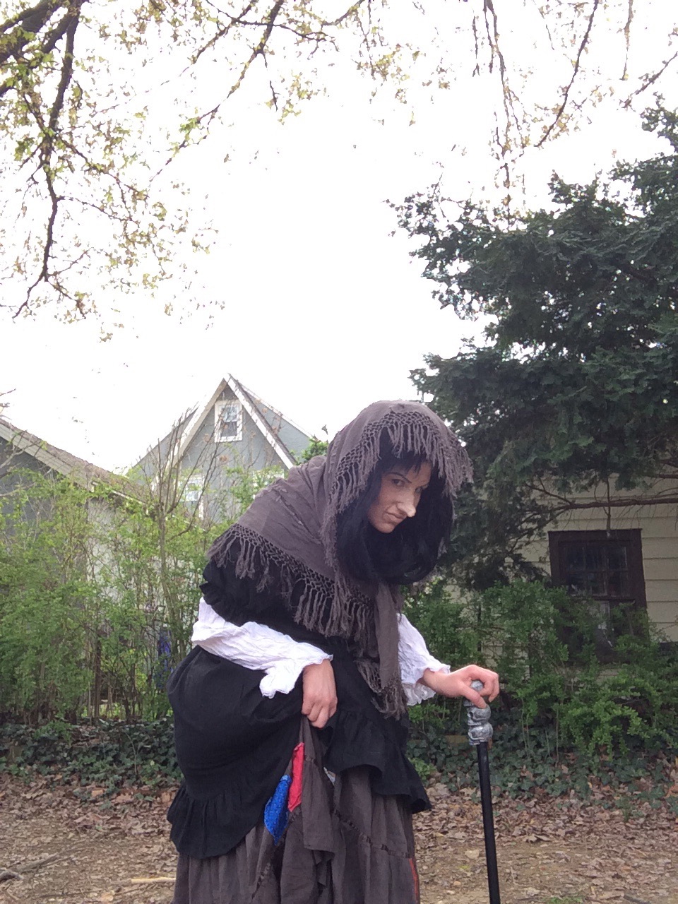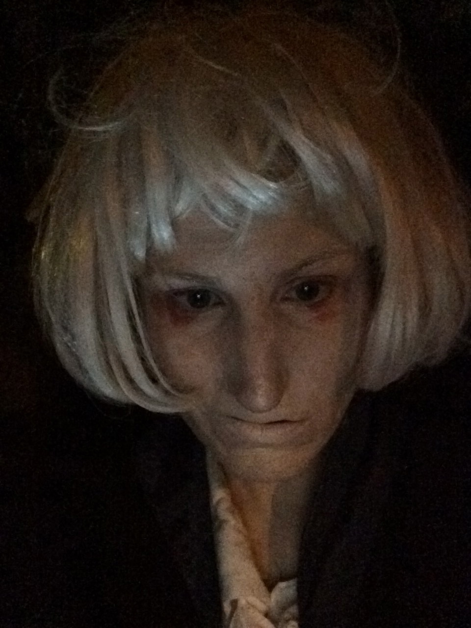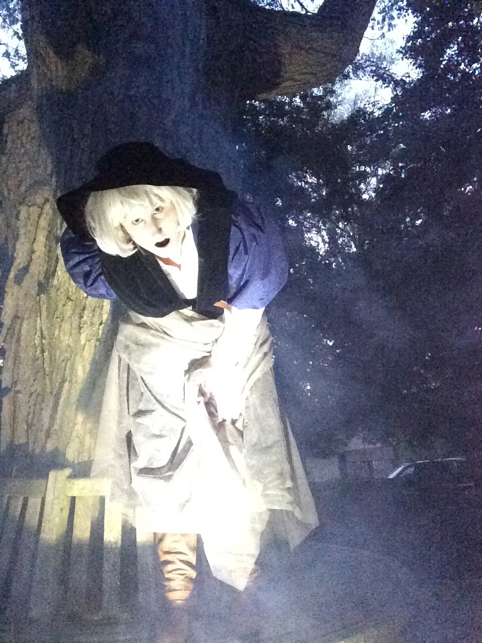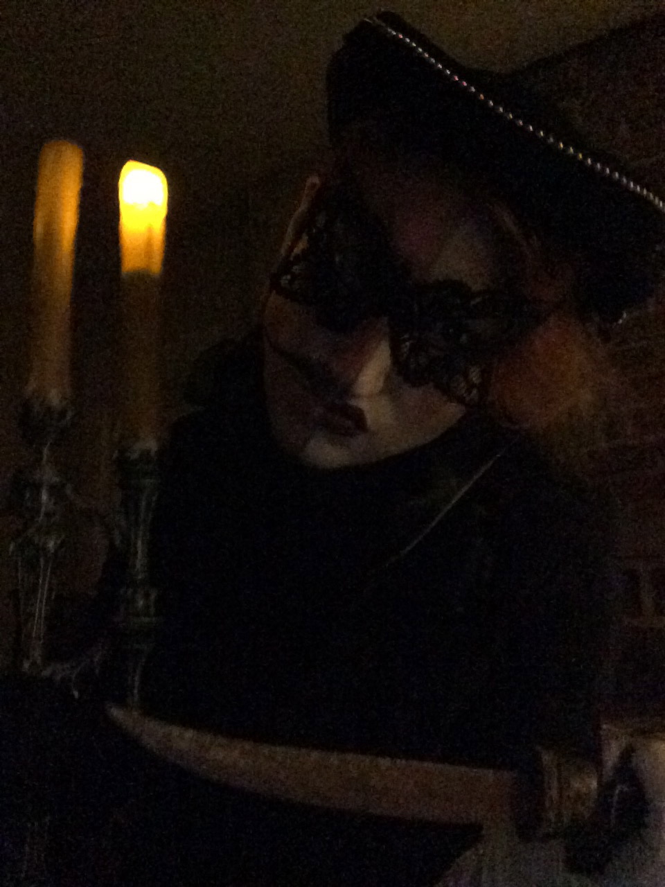 Ah, The Yeoman. This is another favorite of mine. I took the pictures in our front yard at night, and made Alec sit out with me, doing things on his computer, because I thought this might normalize things for anyone who happened to see me. “Auugh!” They would think. “What the hell is that?” And then they’d see Alec, composedly doing computer-stuff in the vicinity. “Ah,” they would say. “That guy isn’t worried about the ghost or crazy person or whatever. I will not worry either.”