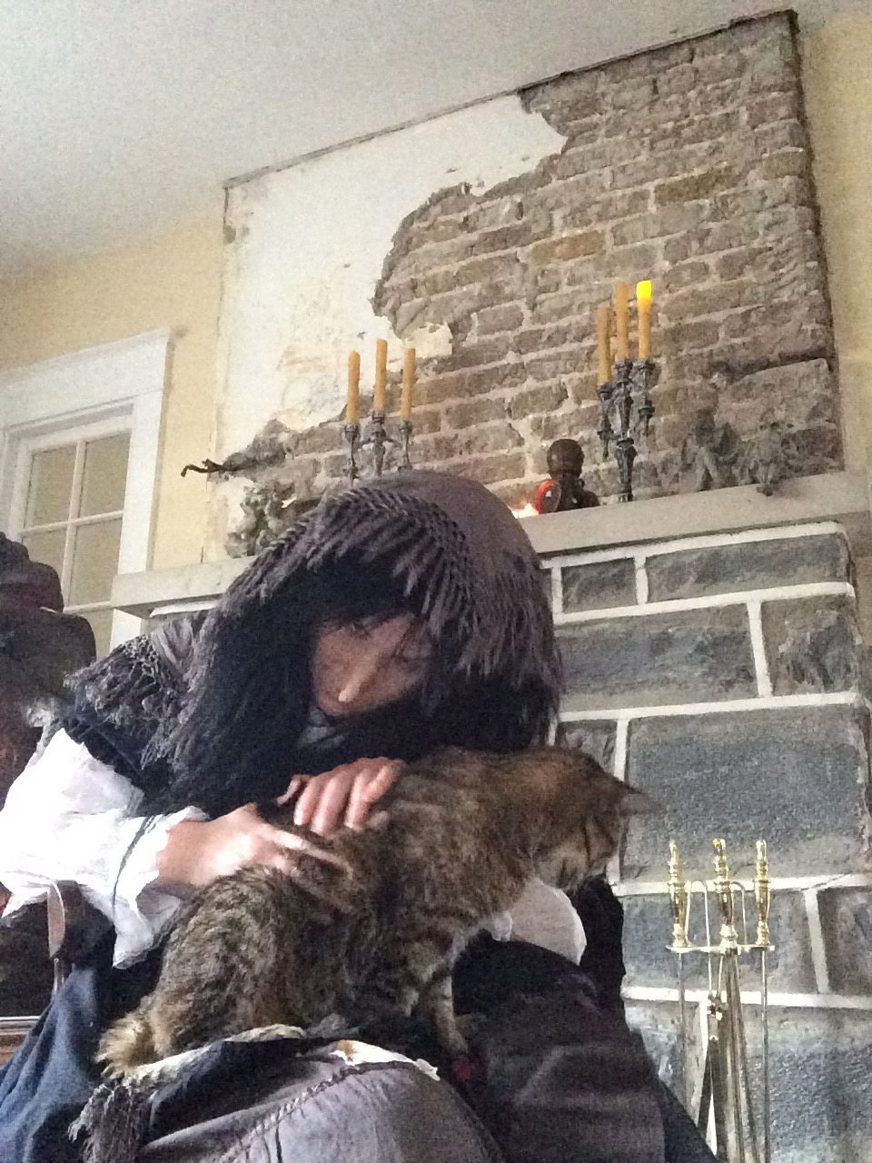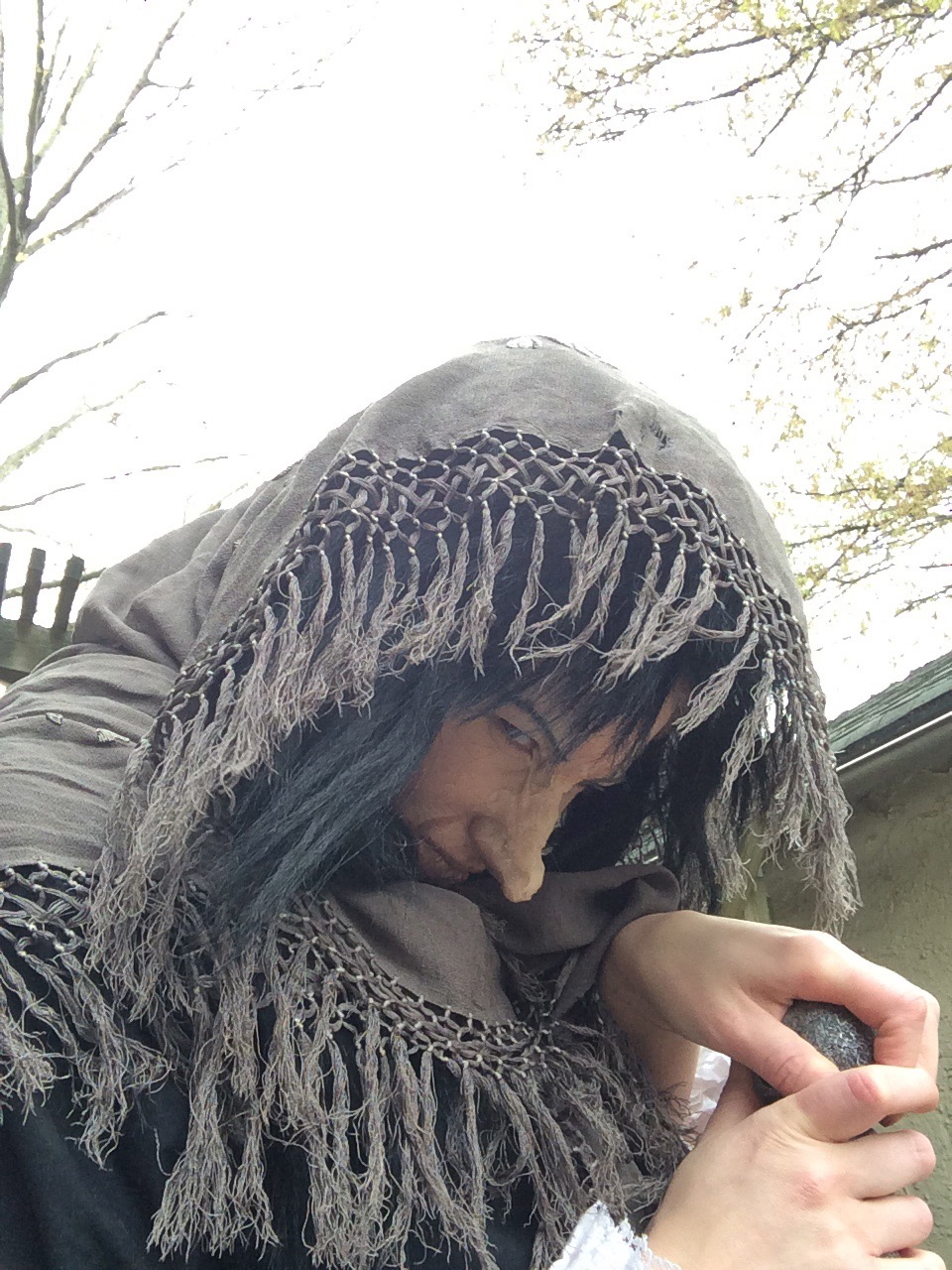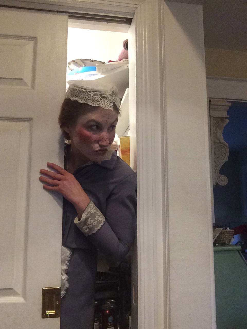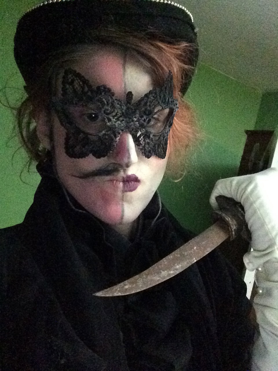 Ah, The Yeoman. This is another favorite of mine. I took the pictures in our front yard at night, and made Alec sit out with me, doing things on his computer, because I thought this might normalize things for anyone who happened to see me. “Auugh!” They would think. “What the hell is that?” And then they’d see Alec, composedly doing computer-stuff in the vicinity. “Ah,” they would say. “That guy isn’t worried about the ghost or crazy person or whatever. I will not worry either.”