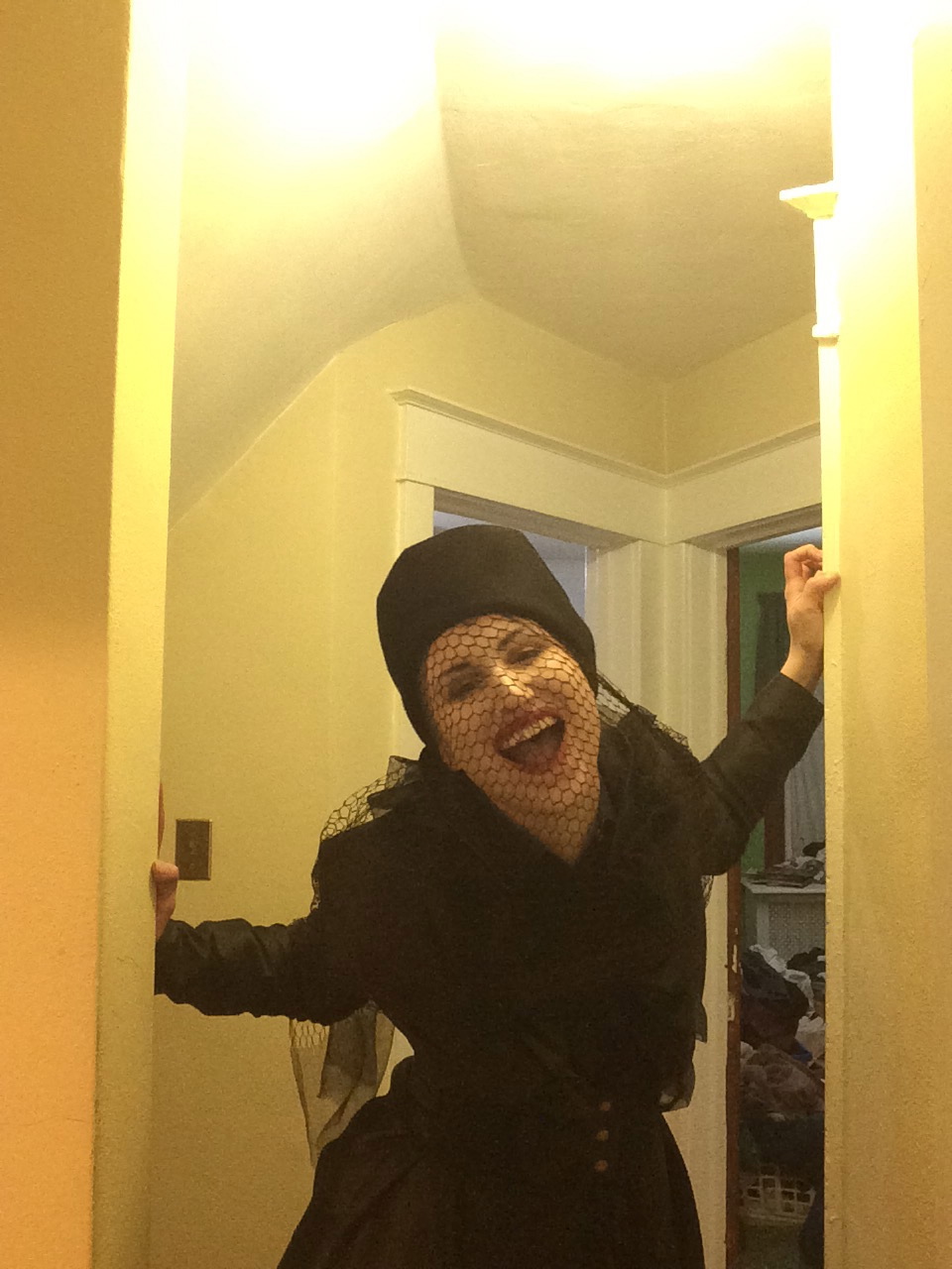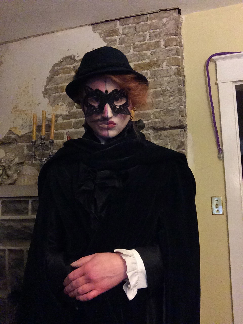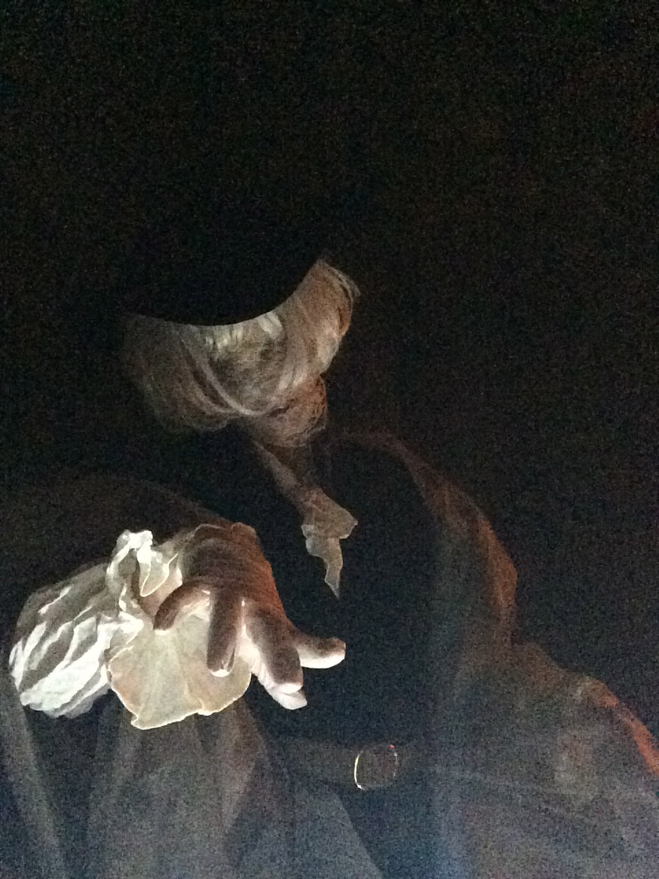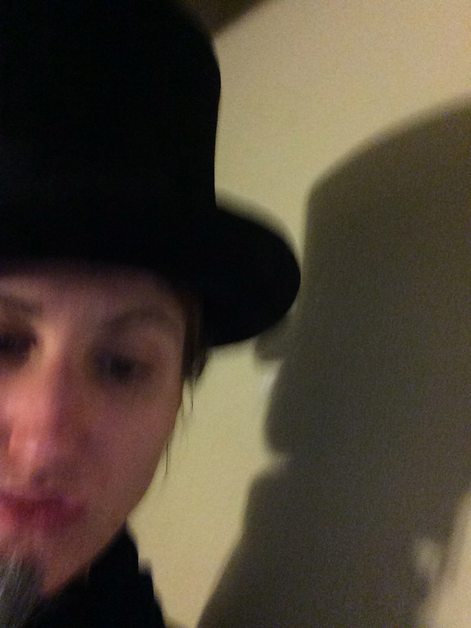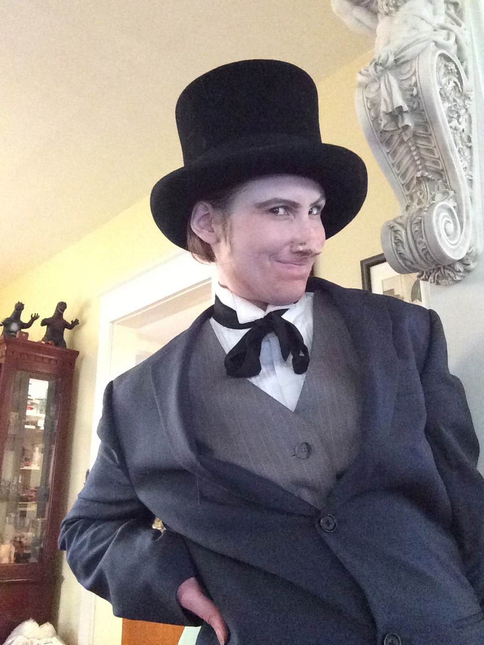 Ah, The Yeoman. This is another favorite of mine. I took the pictures in our front yard at night, and made Alec sit out with me, doing things on his computer, because I thought this might normalize things for anyone who happened to see me. “Auugh!” They would think. “What the hell is that?” And then they’d see Alec, composedly doing computer-stuff in the vicinity. “Ah,” they would say. “That guy isn’t worried about the ghost or crazy person or whatever. I will not worry either.”
