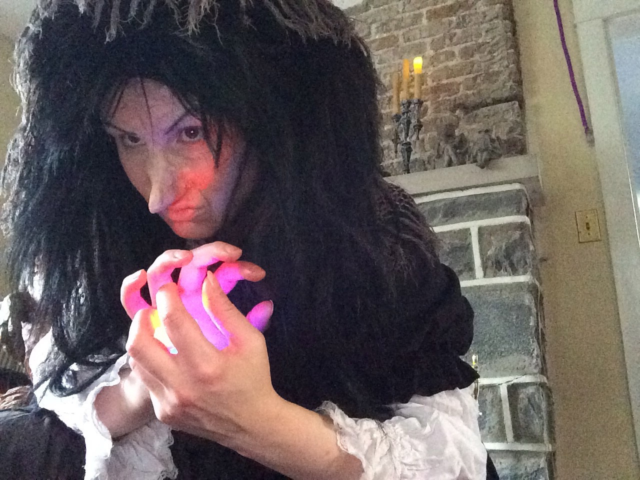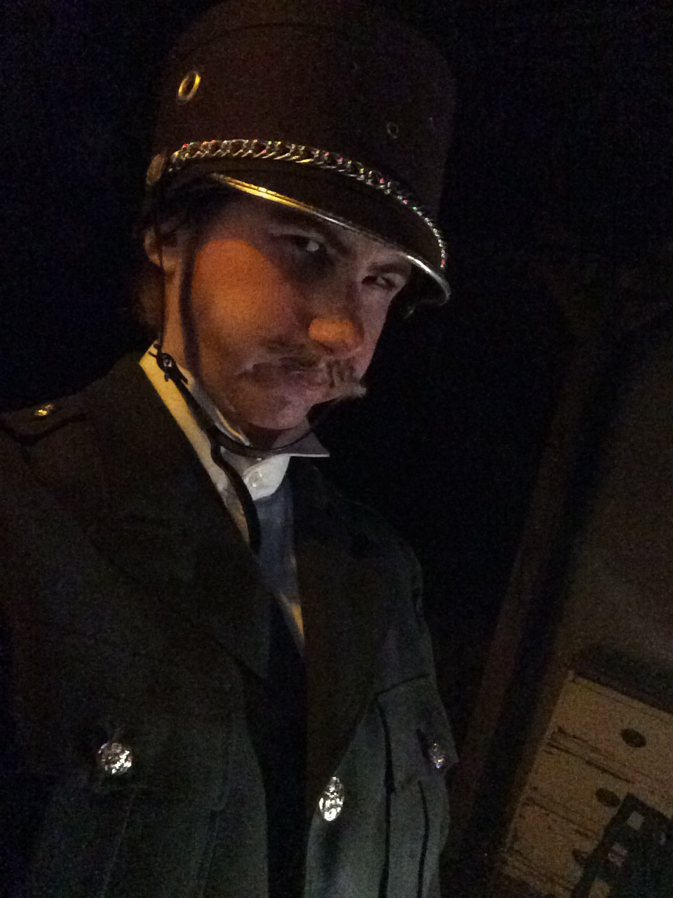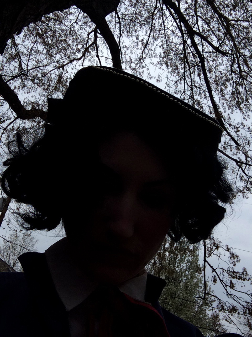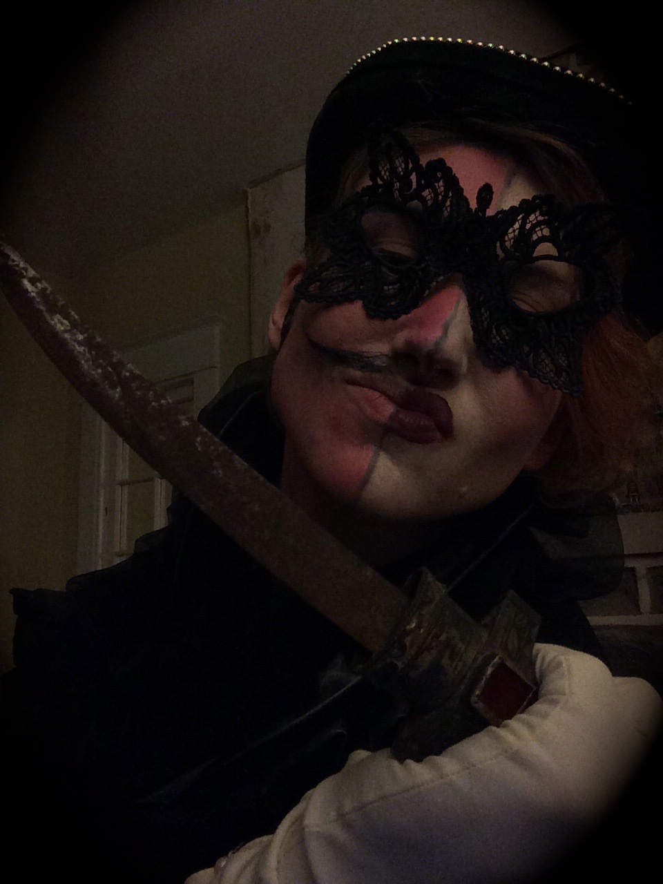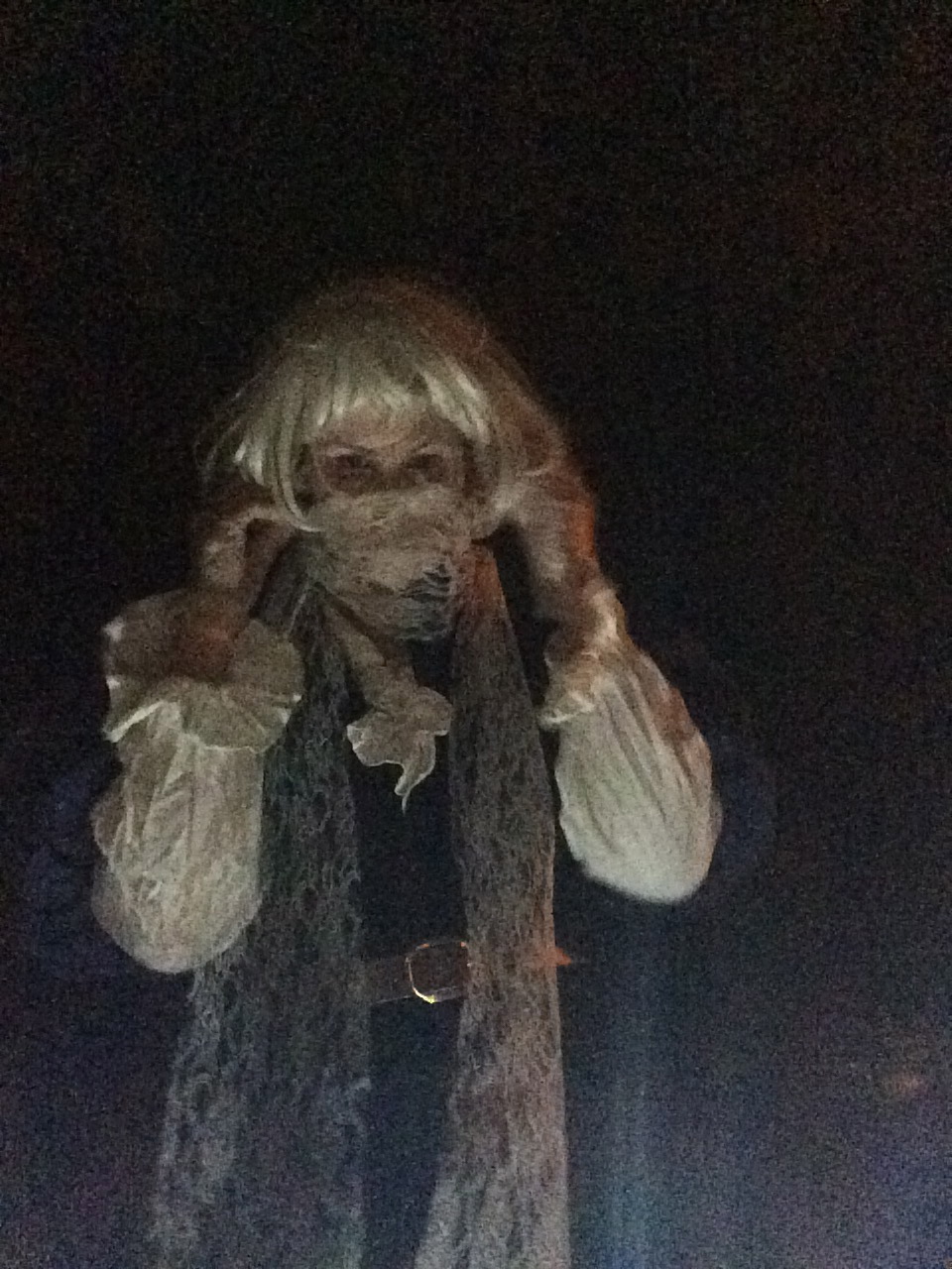 Ah, The Yeoman. This is another favorite of mine. I took the pictures in our front yard at night, and made Alec sit out with me, doing things on his computer, because I thought this might normalize things for anyone who happened to see me. “Auugh!” They would think. “What the hell is that?” And then they’d see Alec, composedly doing computer-stuff in the vicinity. “Ah,” they would say. “That guy isn’t worried about the ghost or crazy person or whatever. I will not worry either.”