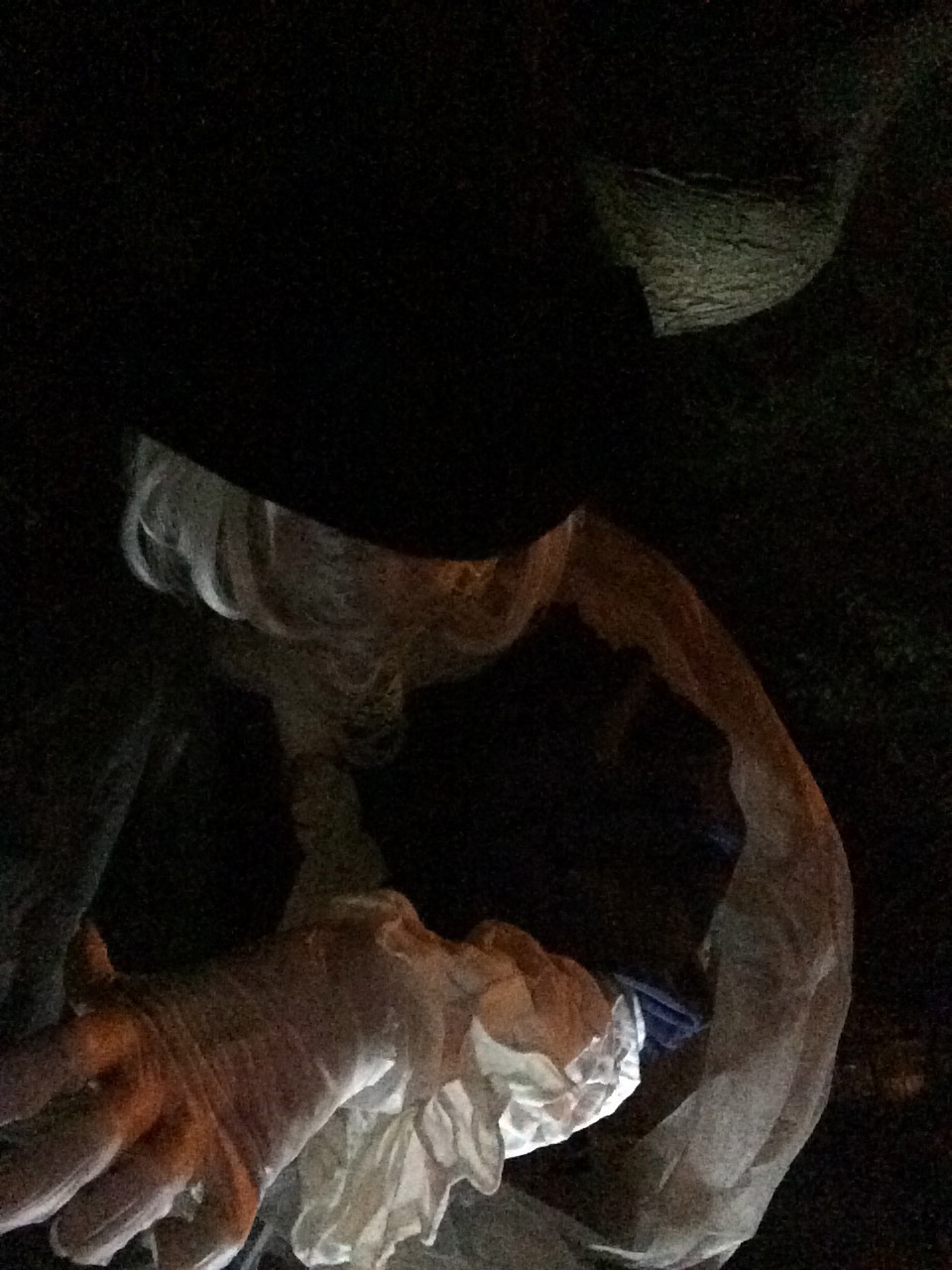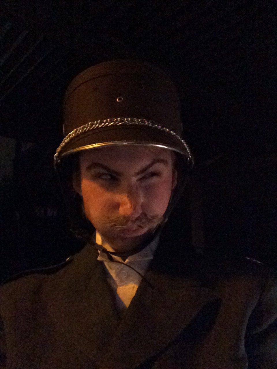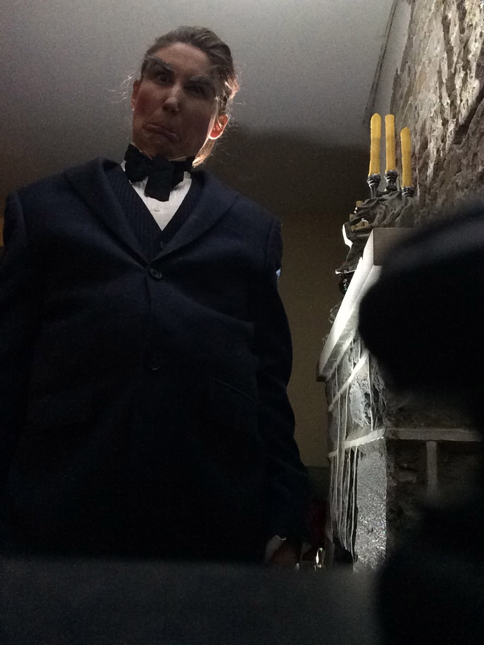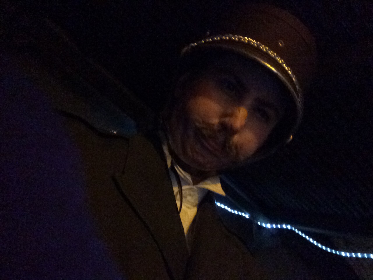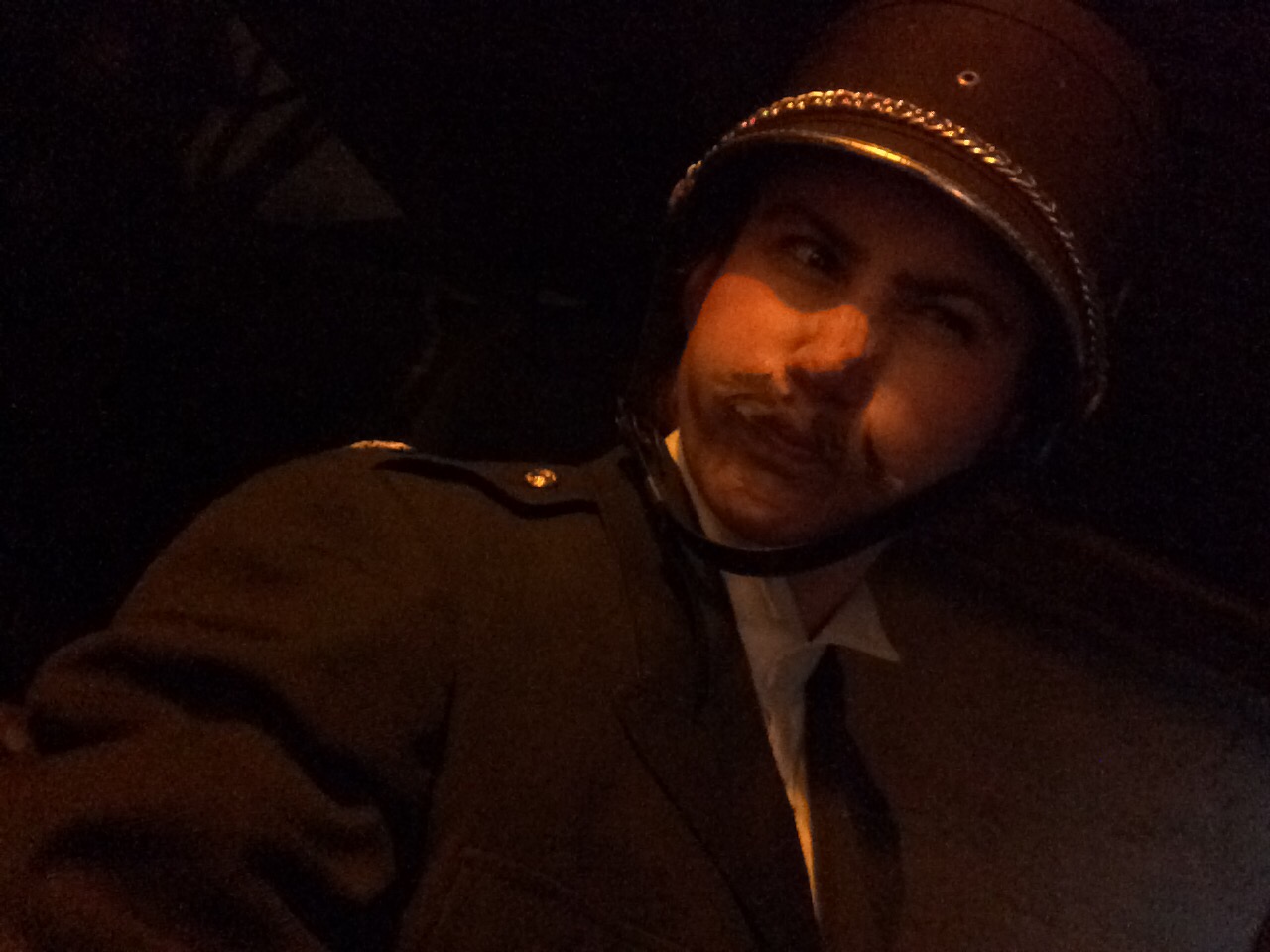 Ah, The Yeoman. This is another favorite of mine. I took the pictures in our front yard at night, and made Alec sit out with me, doing things on his computer, because I thought this might normalize things for anyone who happened to see me. “Auugh!” They would think. “What the hell is that?” And then they’d see Alec, composedly doing computer-stuff in the vicinity. “Ah,” they would say. “That guy isn’t worried about the ghost or crazy person or whatever. I will not worry either.”