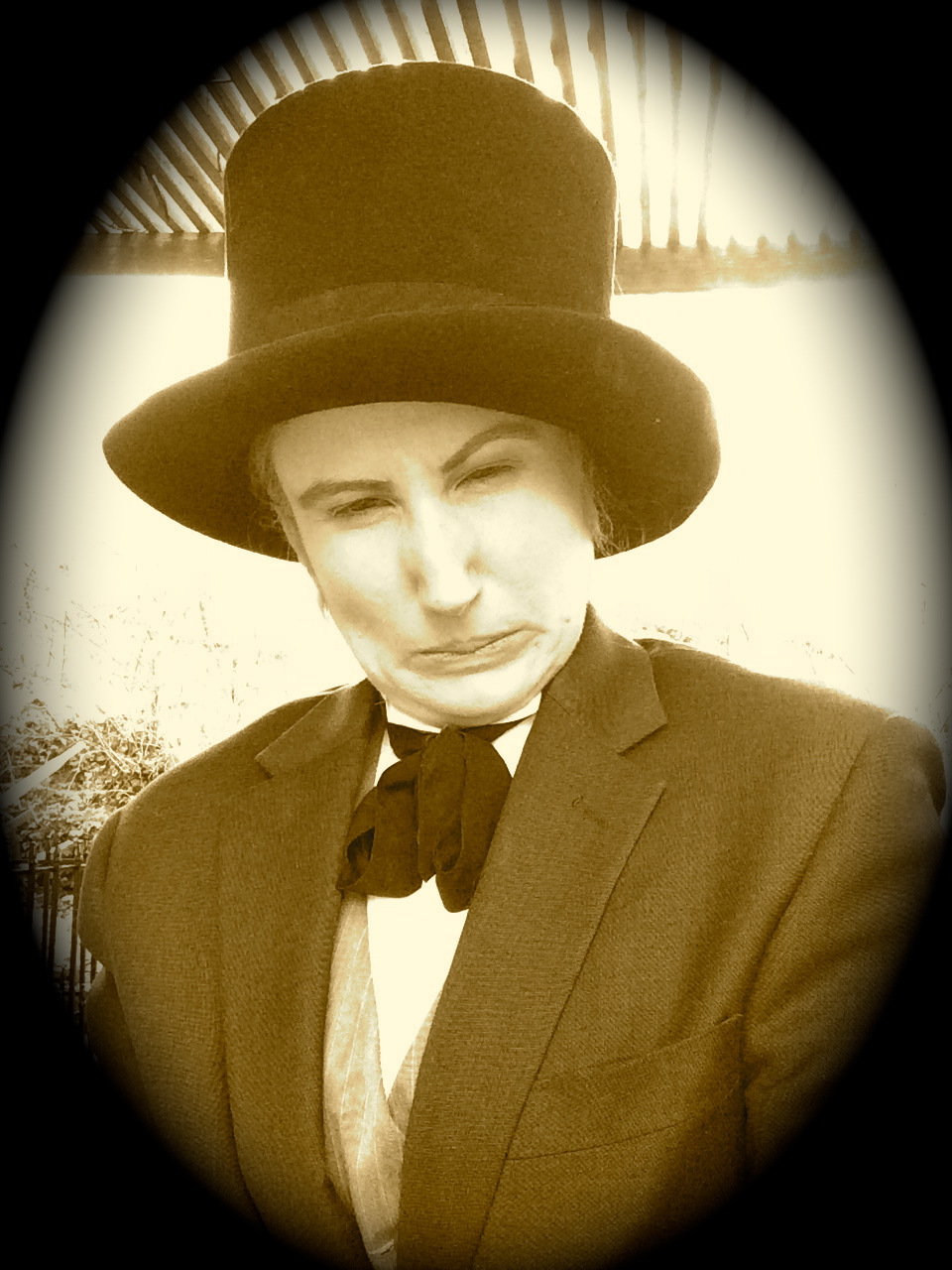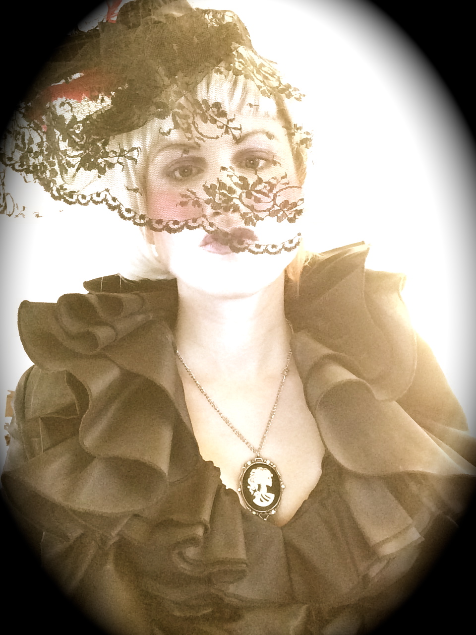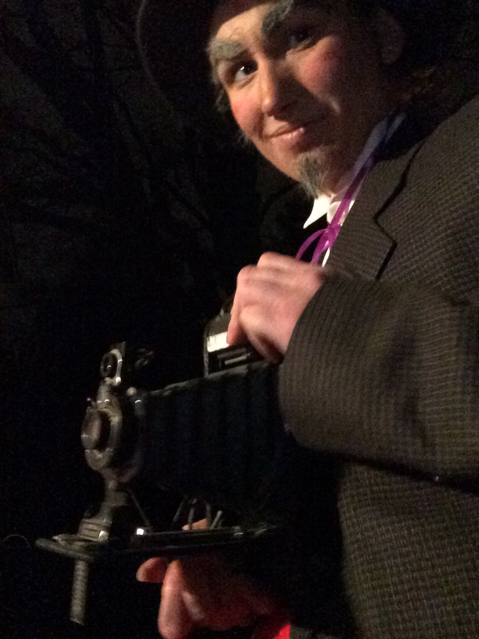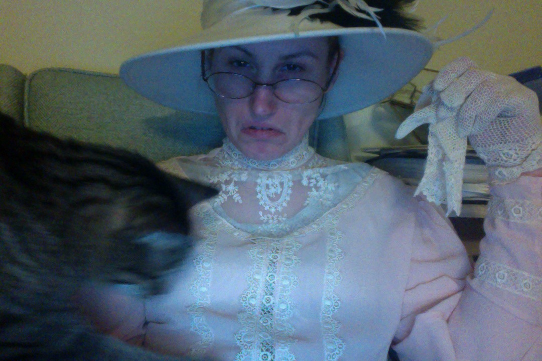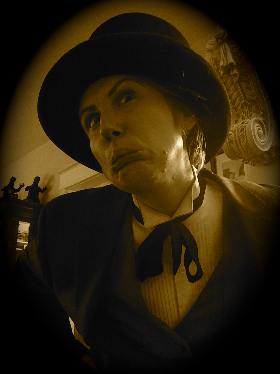 Hey Jazzfeathers- I take the pictures on my iPad, with an app called Fast Camera, which takes a picture every x seconds, with x being set-able by the user. This allows me to take a batch of pics without having to fiddle, which is handy. Then I load them onto my computer, apply a sepia or an “antique” filter, and slap on a frame. That part isn’t too work-intensive, though finding a good setting for the picture and fiddling with lighting does take some time. The dressing up and making up is a bit time-consuming, but it is also fun, and I’m getting faster at it already. The writing is the part I like best, and after the first installments it has been flowing pretty freely. Once you’ve figured out what needs to happen in each scene, it gets a lot easier- at least, that is what I am experiencing. I’m crossing my fingers that I don’t hit a block!