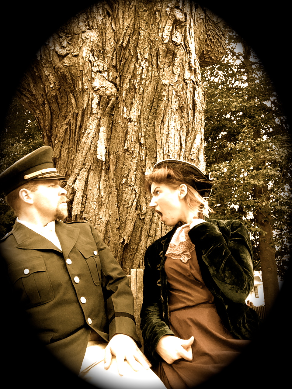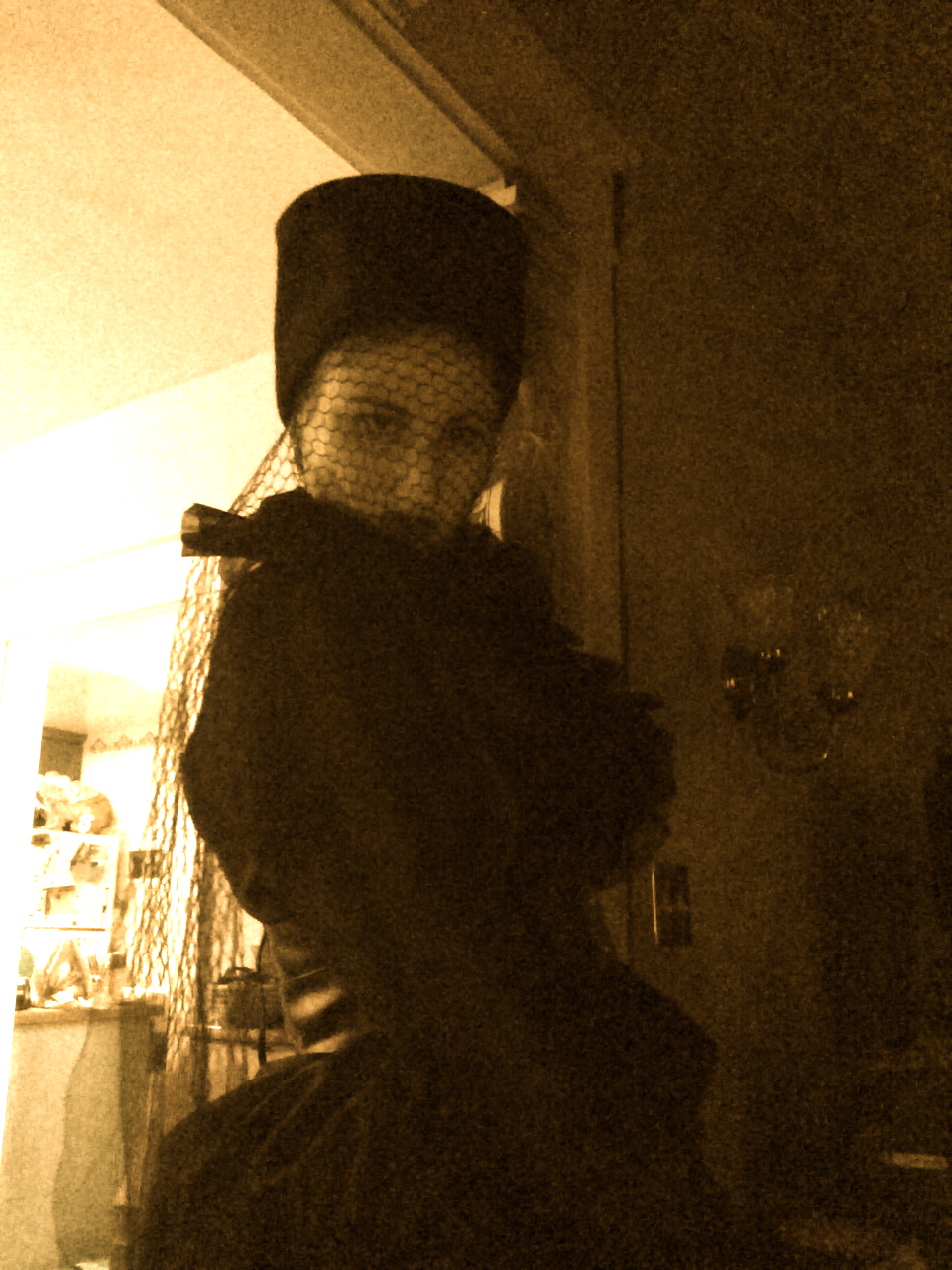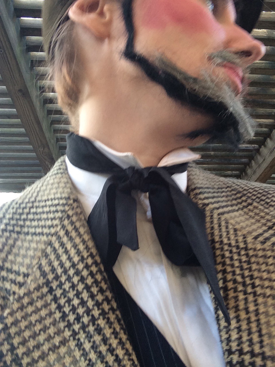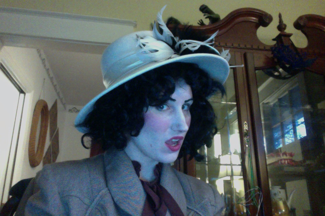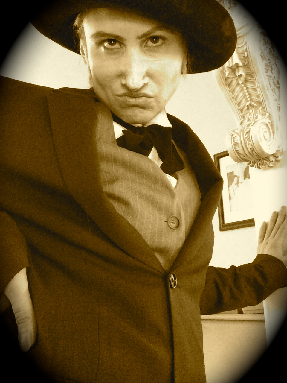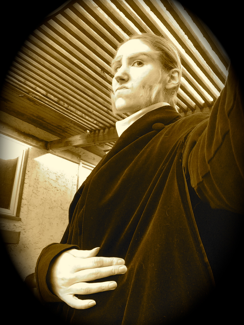 Hey Jazzfeathers- I take the pictures on my iPad, with an app called Fast Camera, which takes a picture every x seconds, with x being set-able by the user. This allows me to take a batch of pics without having to fiddle, which is handy. Then I load them onto my computer, apply a sepia or an “antique” filter, and slap on a frame. That part isn’t too work-intensive, though finding a good setting for the picture and fiddling with lighting does take some time. The dressing up and making up is a bit time-consuming, but it is also fun, and I’m getting faster at it already. The writing is the part I like best, and after the first installments it has been flowing pretty freely. Once you’ve figured out what needs to happen in each scene, it gets a lot easier- at least, that is what I am experiencing. I’m crossing my fingers that I don’t hit a block!
