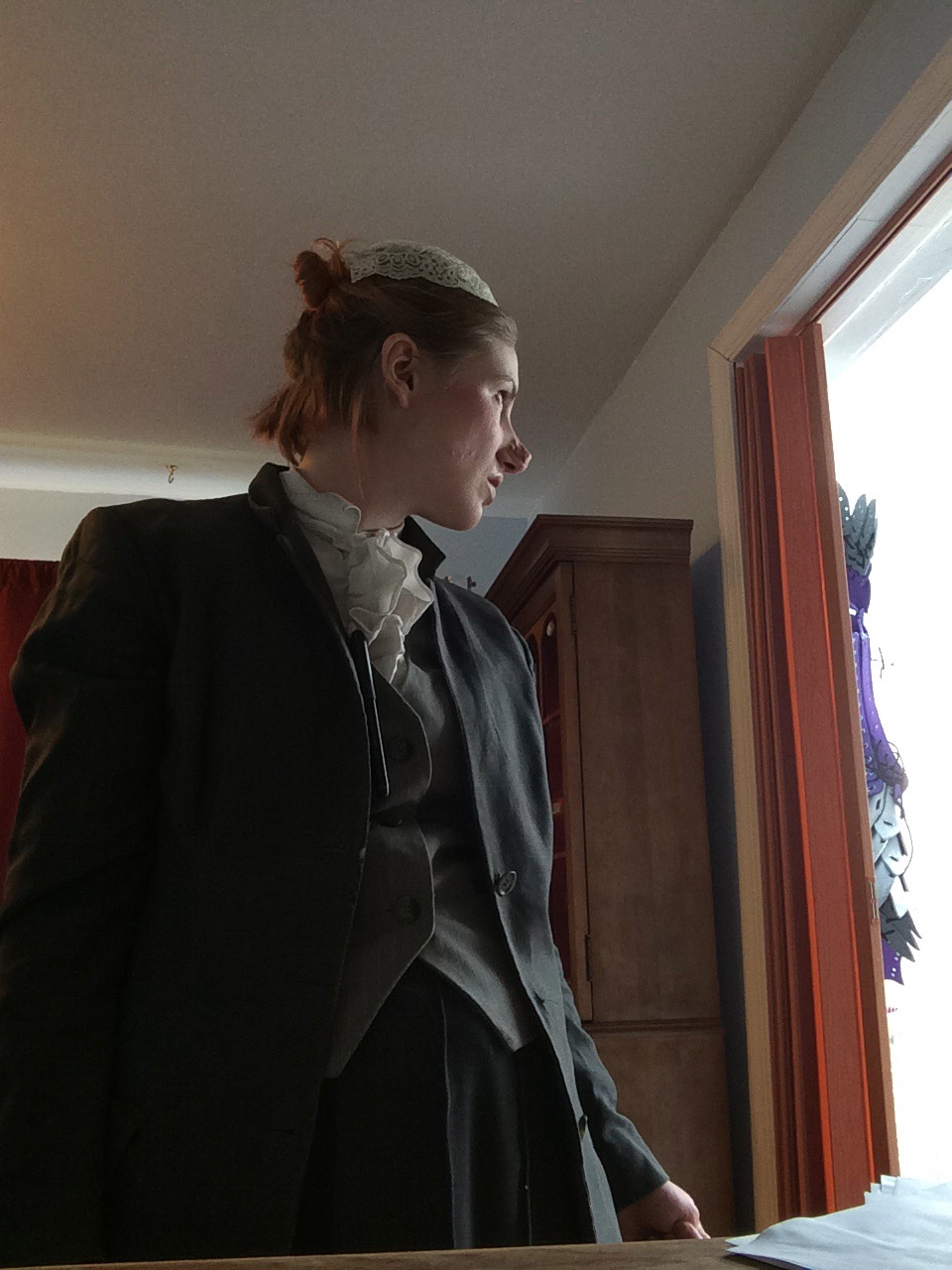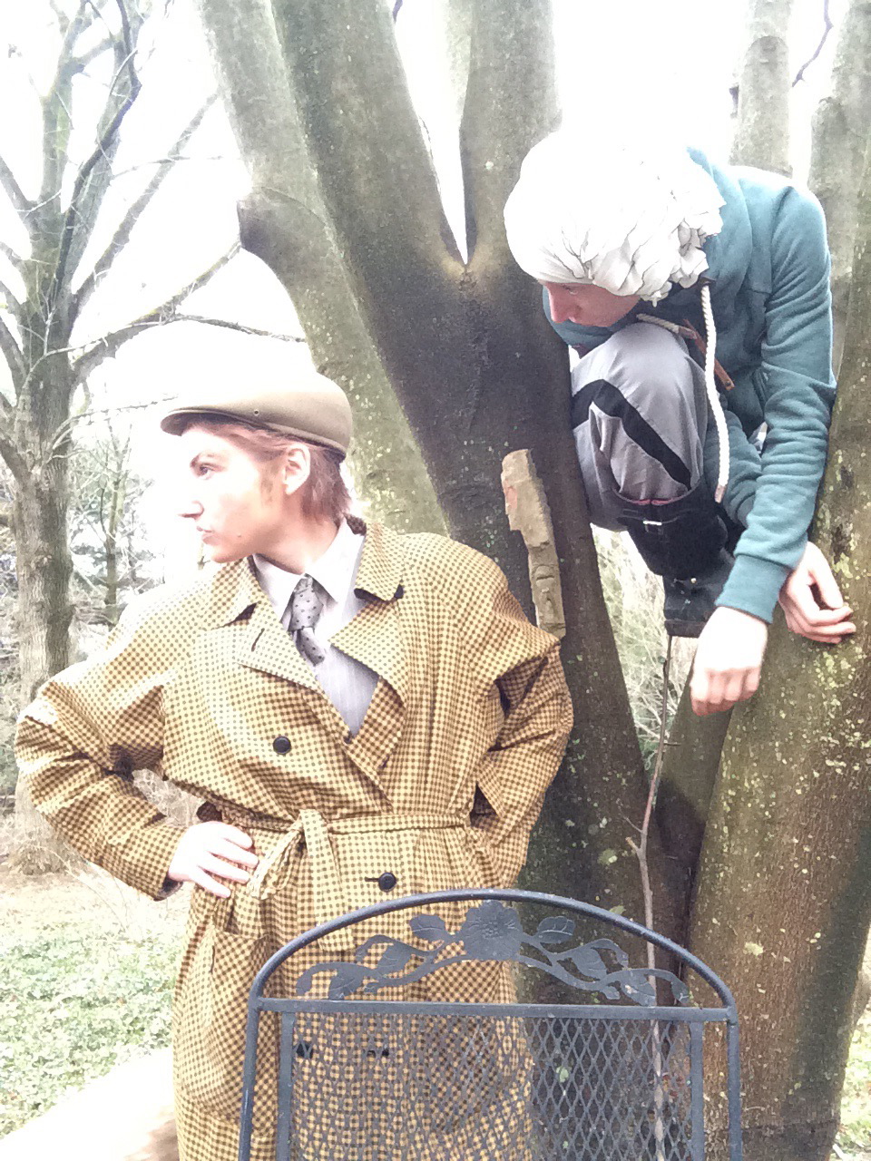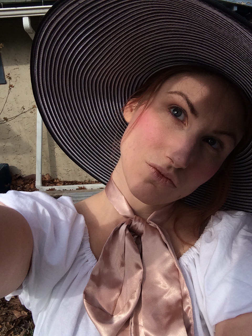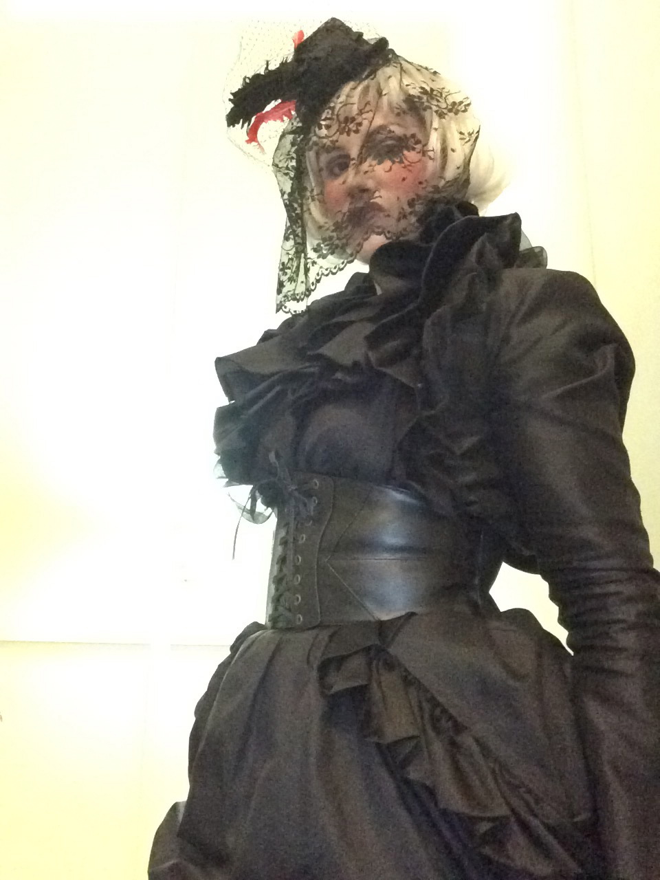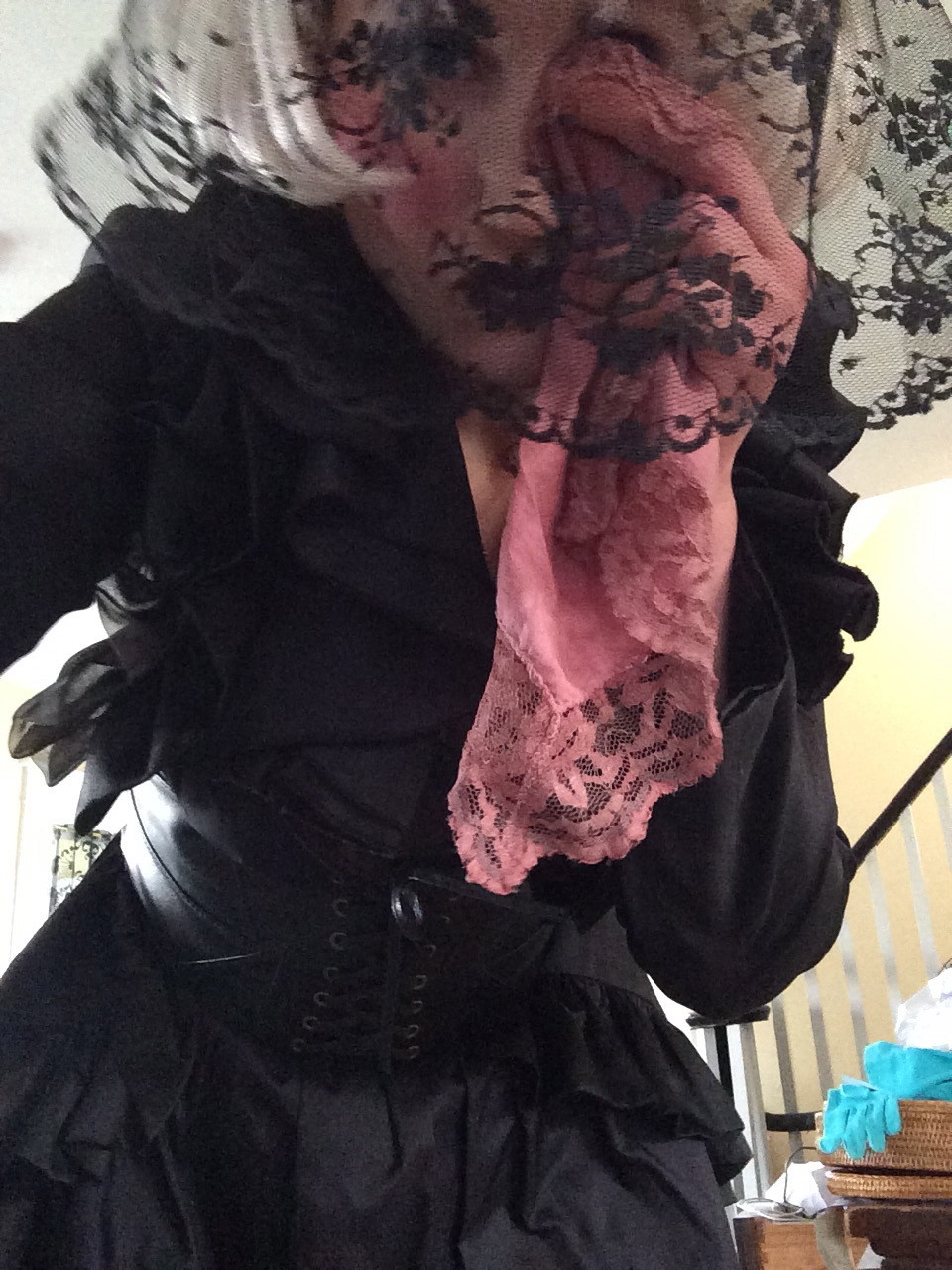 Hey Jazzfeathers- I take the pictures on my iPad, with an app called Fast Camera, which takes a picture every x seconds, with x being set-able by the user. This allows me to take a batch of pics without having to fiddle, which is handy. Then I load them onto my computer, apply a sepia or an “antique” filter, and slap on a frame. That part isn’t too work-intensive, though finding a good setting for the picture and fiddling with lighting does take some time. The dressing up and making up is a bit time-consuming, but it is also fun, and I’m getting faster at it already. The writing is the part I like best, and after the first installments it has been flowing pretty freely. Once you’ve figured out what needs to happen in each scene, it gets a lot easier- at least, that is what I am experiencing. I’m crossing my fingers that I don’t hit a block!