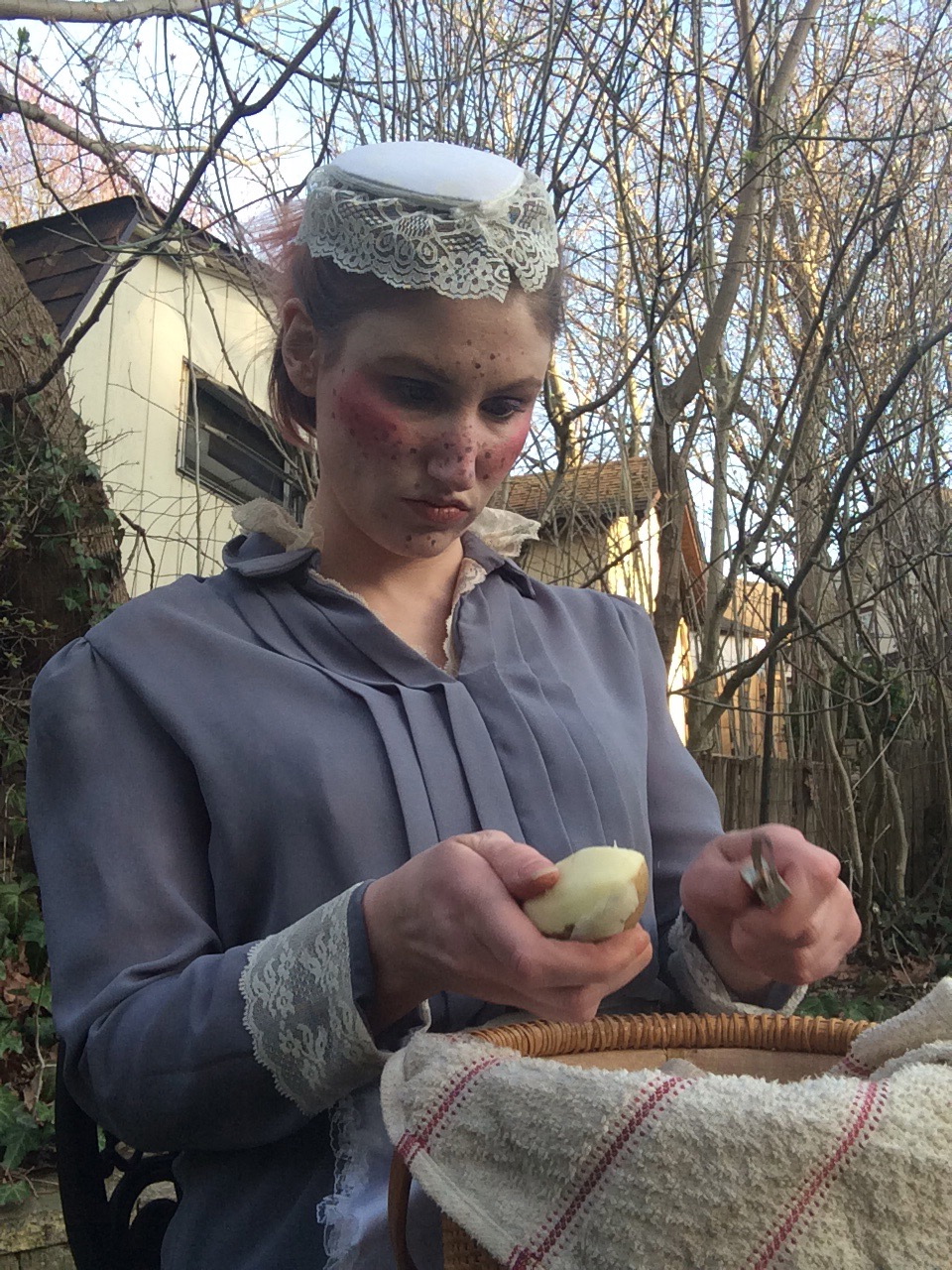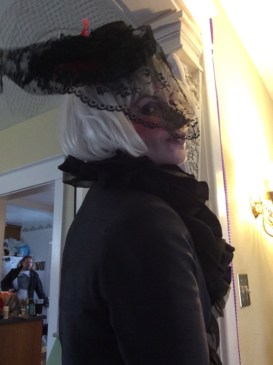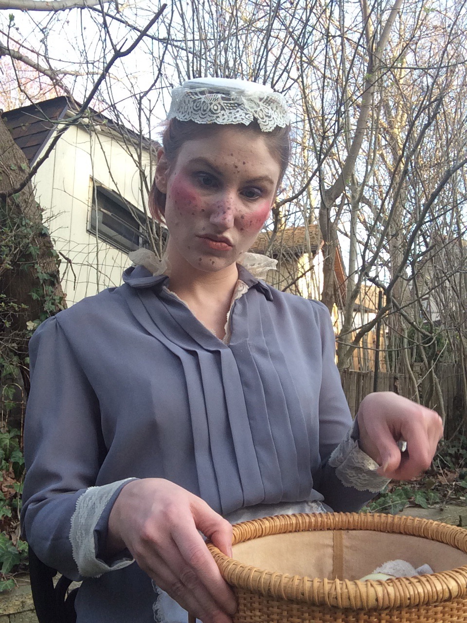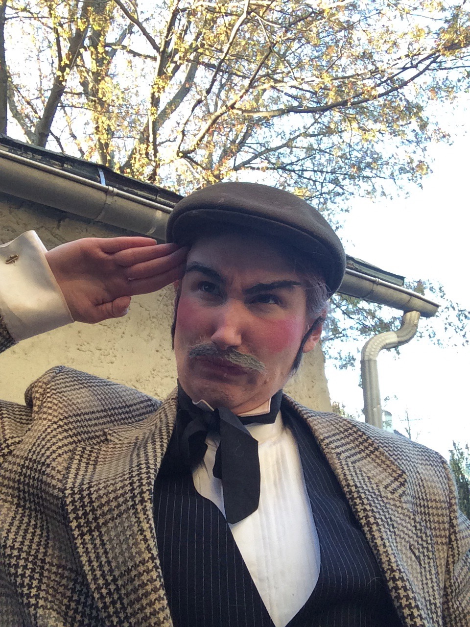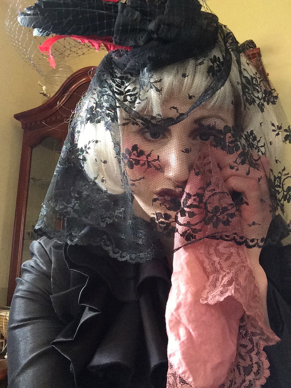 Hey Jazzfeathers- I take the pictures on my iPad, with an app called Fast Camera, which takes a picture every x seconds, with x being set-able by the user. This allows me to take a batch of pics without having to fiddle, which is handy. Then I load them onto my computer, apply a sepia or an “antique” filter, and slap on a frame. That part isn’t too work-intensive, though finding a good setting for the picture and fiddling with lighting does take some time. The dressing up and making up is a bit time-consuming, but it is also fun, and I’m getting faster at it already. The writing is the part I like best, and after the first installments it has been flowing pretty freely. Once you’ve figured out what needs to happen in each scene, it gets a lot easier- at least, that is what I am experiencing. I’m crossing my fingers that I don’t hit a block!
