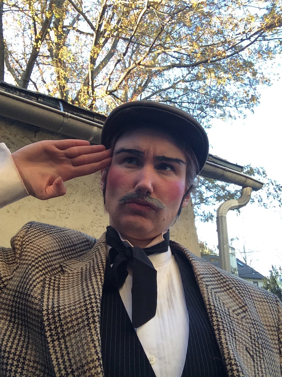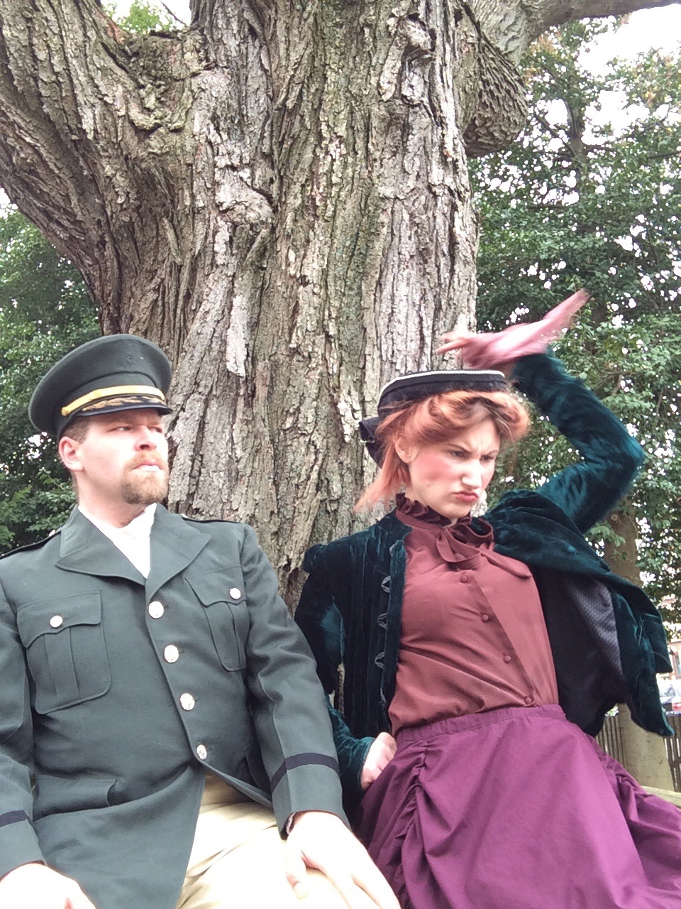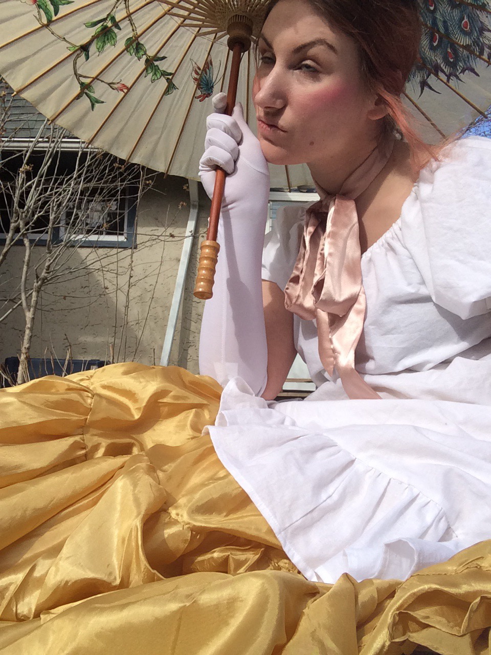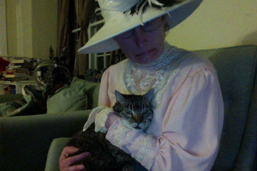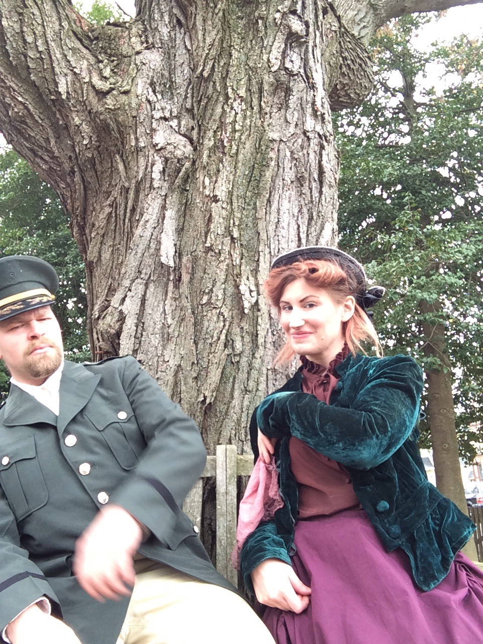 Hey Jazzfeathers- I take the pictures on my iPad, with an app called Fast Camera, which takes a picture every x seconds, with x being set-able by the user. This allows me to take a batch of pics without having to fiddle, which is handy. Then I load them onto my computer, apply a sepia or an “antique” filter, and slap on a frame. That part isn’t too work-intensive, though finding a good setting for the picture and fiddling with lighting does take some time. The dressing up and making up is a bit time-consuming, but it is also fun, and I’m getting faster at it already. The writing is the part I like best, and after the first installments it has been flowing pretty freely. Once you’ve figured out what needs to happen in each scene, it gets a lot easier- at least, that is what I am experiencing. I’m crossing my fingers that I don’t hit a block!