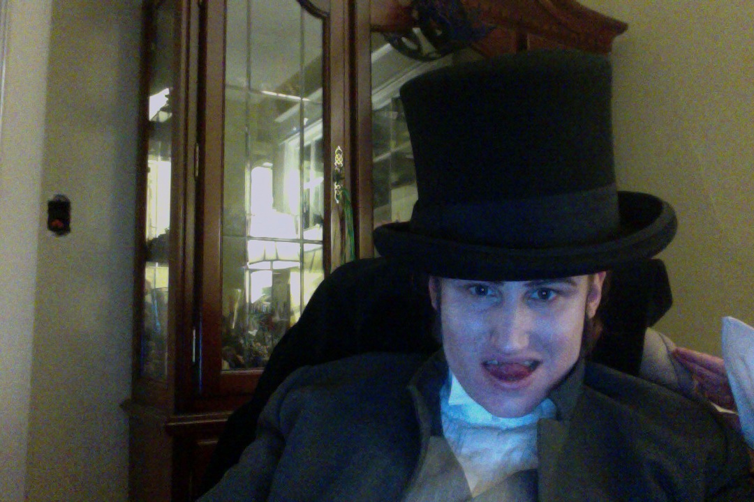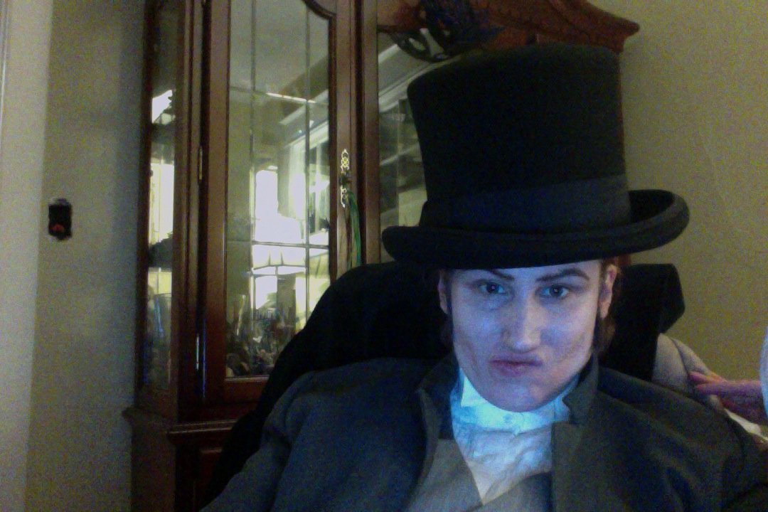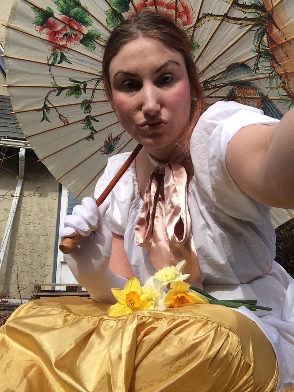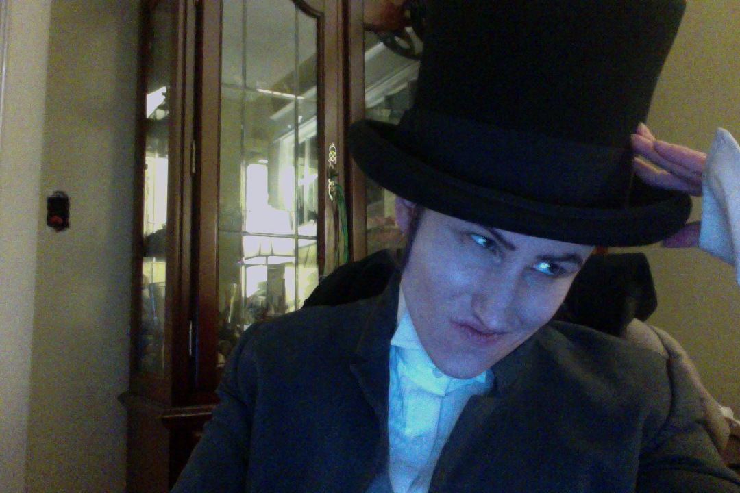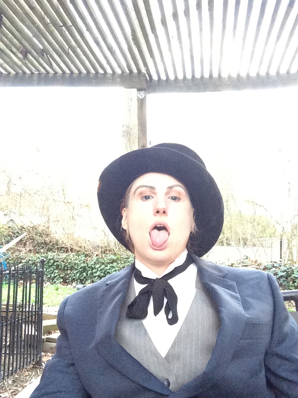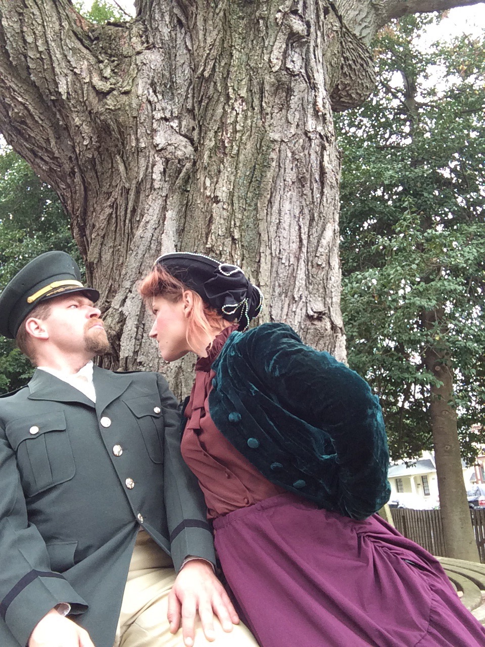 Hey Jazzfeathers- I take the pictures on my iPad, with an app called Fast Camera, which takes a picture every x seconds, with x being set-able by the user. This allows me to take a batch of pics without having to fiddle, which is handy. Then I load them onto my computer, apply a sepia or an “antique” filter, and slap on a frame. That part isn’t too work-intensive, though finding a good setting for the picture and fiddling with lighting does take some time. The dressing up and making up is a bit time-consuming, but it is also fun, and I’m getting faster at it already. The writing is the part I like best, and after the first installments it has been flowing pretty freely. Once you’ve figured out what needs to happen in each scene, it gets a lot easier- at least, that is what I am experiencing. I’m crossing my fingers that I don’t hit a block!