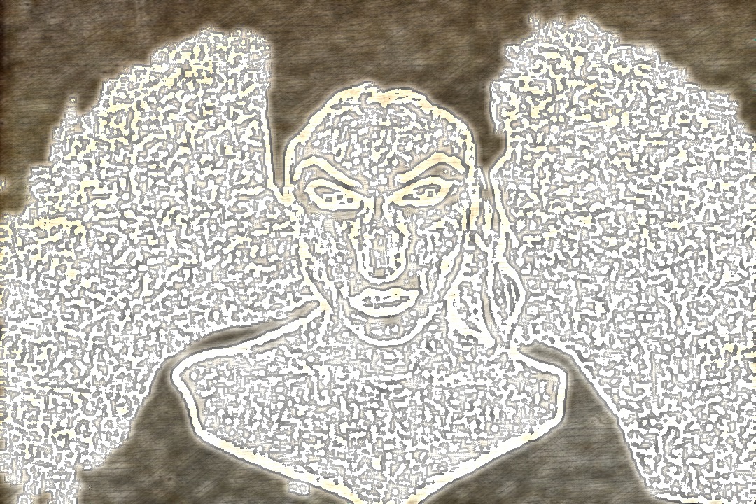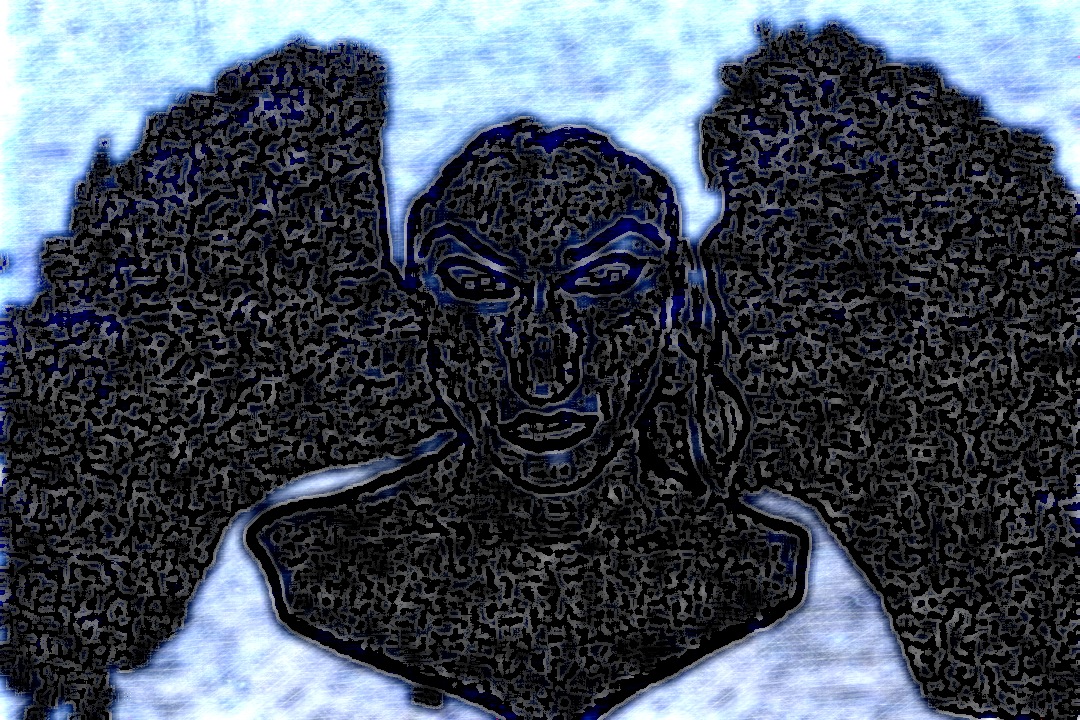 The first picture is of my face with no tricks save the ancient feminine trick of make-up. The other pictures have been modified, each a modified version of the picture before it, in FX Photo Studio Pro, otherwise known as “The best 11 bucks I’ve spent in a while on the Mac App Store.” It only does one thing, but it does that one thing very well, at least from the perspective of a woman who wishes to take pictures of her face and make them into monsters. Limited Demographic? Perhaps.